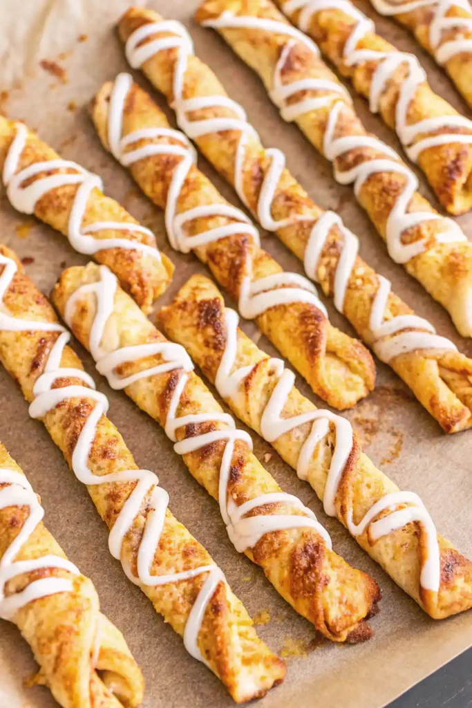 Step 9: Drizzle and Serve Once your pumpkin pie twists have cooled slightly (about 5 minutes), it’s time to add the frosting. Transfer the cream cheese frosting to a zip-lock bag, seal it shut, and snip off a small corner. Drizzle the frosting over each twist in a decorative pattern. If you prefer, you can also serve the frosting on the side as a dipping sauce—there’s no wrong way to enjoy it!