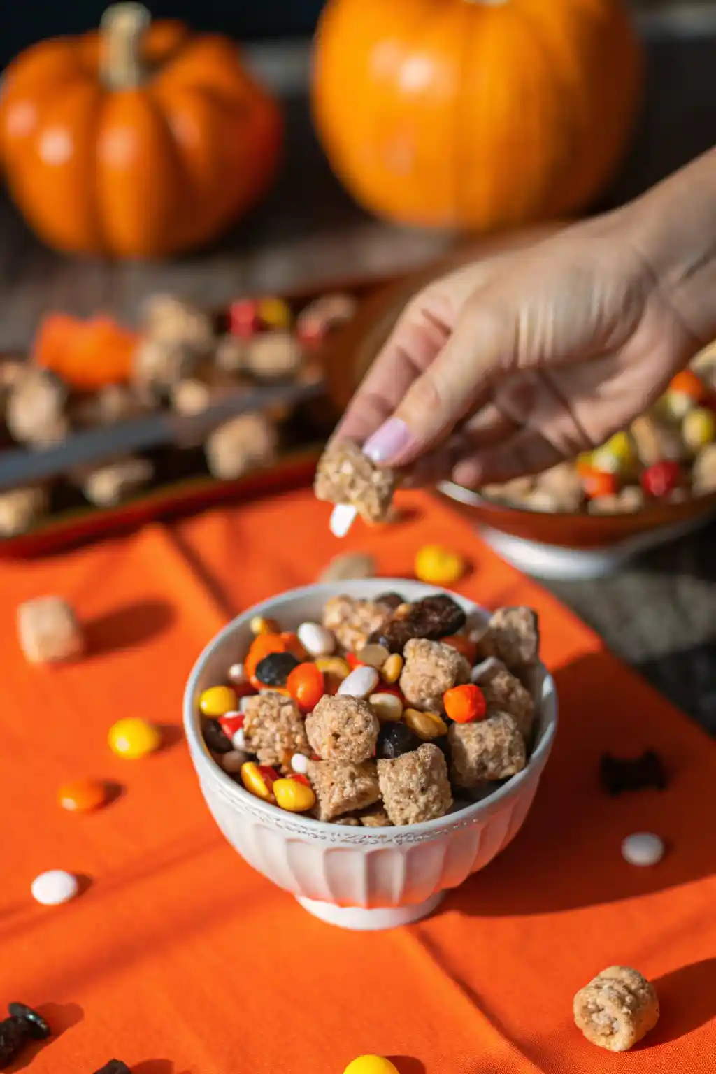 - M&Ms (Halloween Colors): 1 cup. Adds color, chocolatey goodness, and a satisfying crunch.